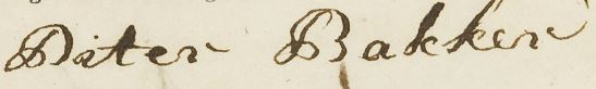 - [S723] DTB, Amsterdam, online database : Bk 560, p. 253. Jan Bakker, wed. Geertruij Hagedoorn, en Maria Leppinck, 23 Oct 1722.