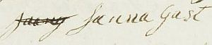 Janna Gast was (NH) gedoopt op 16 mei 1762 in Almelo.2,3 Zij trouwde met Johan Bartholomeus Schilt1 (otr. 27 okt 1797, Amsterdam. Hij was geadsisteert met zijn zuster Johanna Pieternella Catharina Schilt, zij met het consent haar moeder Elsje Letteboer.)1