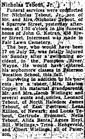 Obit Nicholas Tebout, Jr. Paterson Morning Call, June 30, 1949, pg. 19