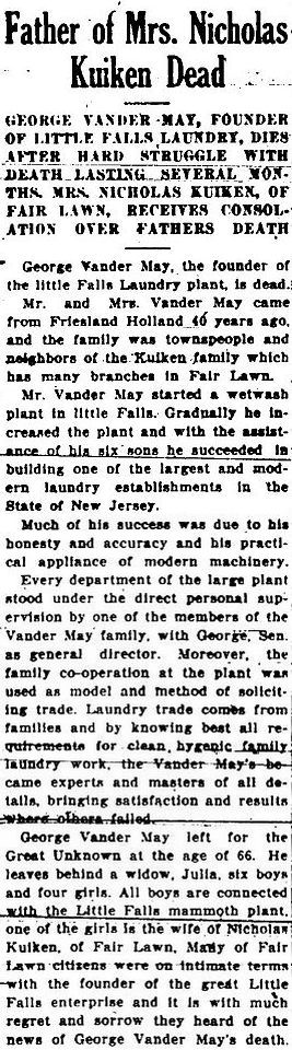 Obit George Vander May. Fair Lawn Paramus Clarion, Mar. 23, 1928, pg. 1