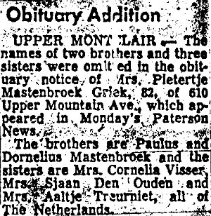Addition Obit Mrs. Pietertje Griek. Paterson Evening News, Apr 13, 1966, pg. 53