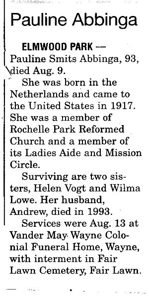 Obit Pauline Abbinga. Shoppers News, Aug 21, 2002, pg. 22