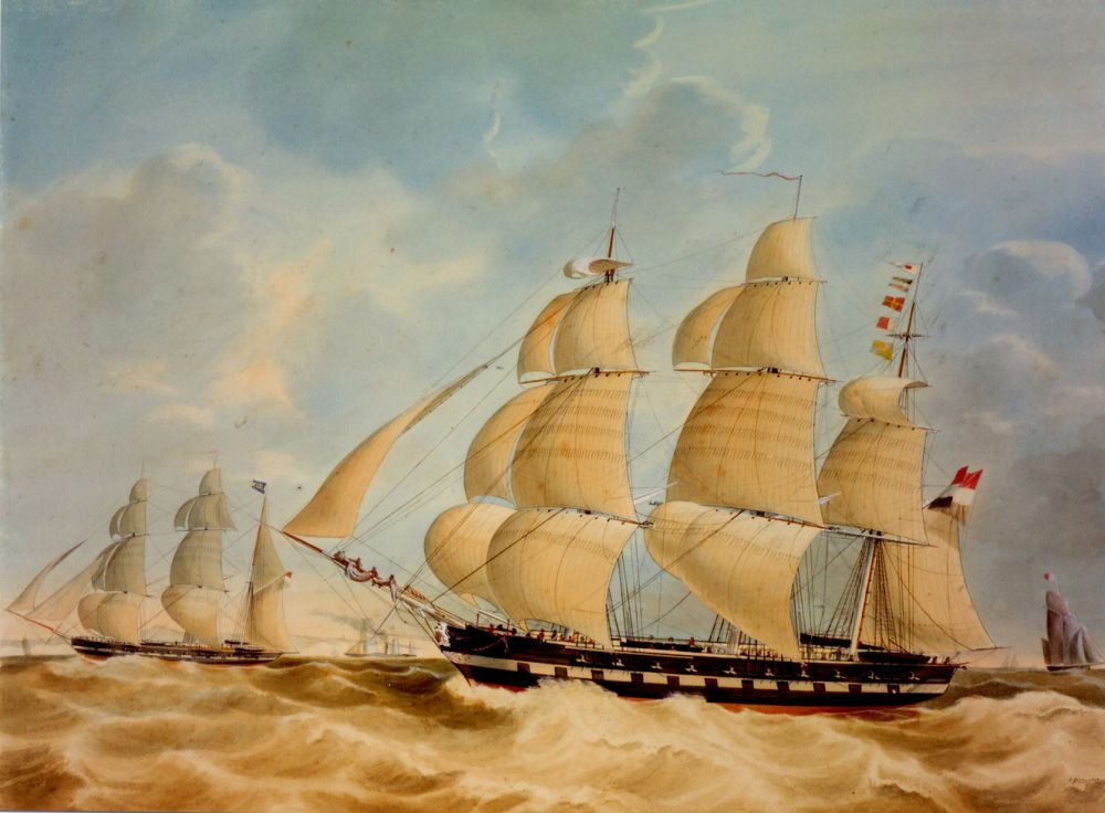 Het fregatschip 'Doggersbank'. drawing by Jacob Spin, dated 1846