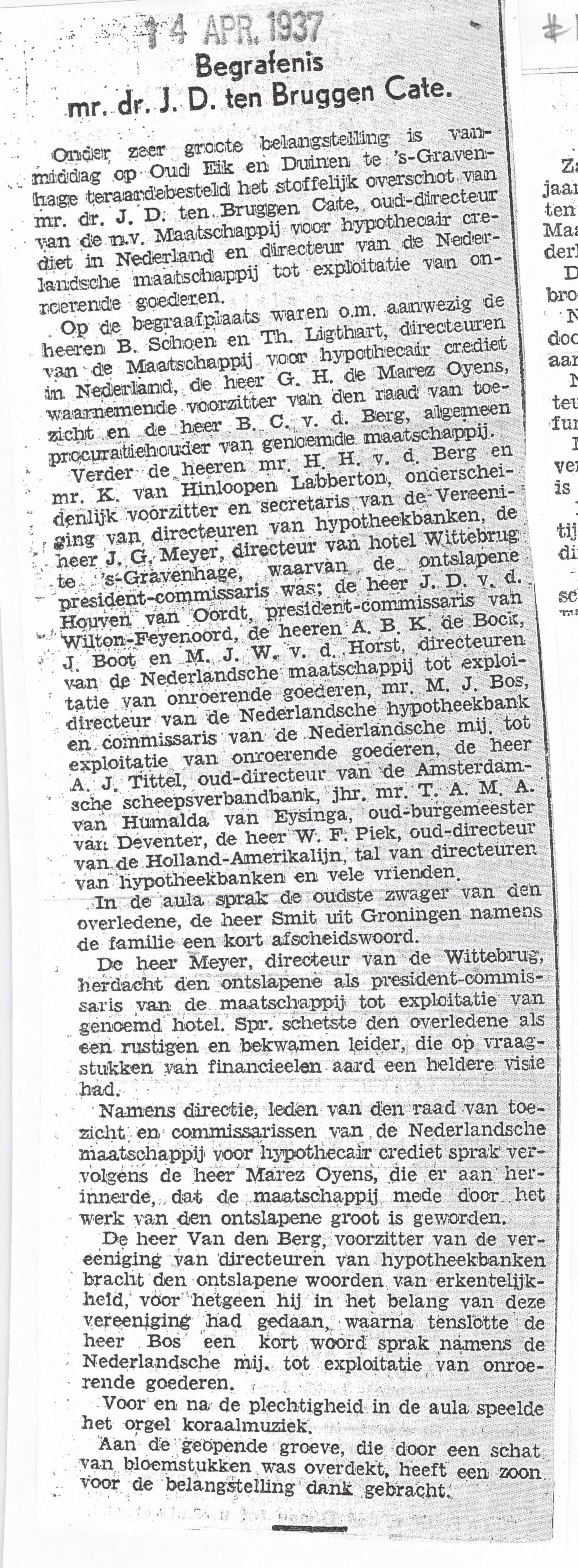 Artikel over de begrafenis, 14 Apr 1937