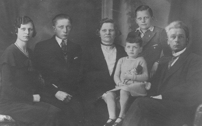 1935. Fam. Jansen. Het gezicht van Jacob is er in geplakt. Hij was al overleden toen deze foto gemaakt werd.6