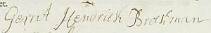 - [S723] Ondertrouw, Amsterdam, online database : Boek 756, p. 29. Gerrit Hendrick Brockman en Maria Bruijn, 1 Sep 1786.