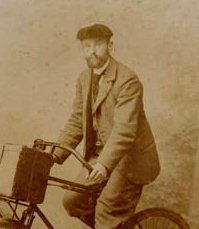 Hermann Voss was a merchant. The picture shows him on the bicycle that he used for his deliveries. In 1910 he had a store at Marktstrasse 15 in Jülich Marktstrasse 15 in Jülich.2,8