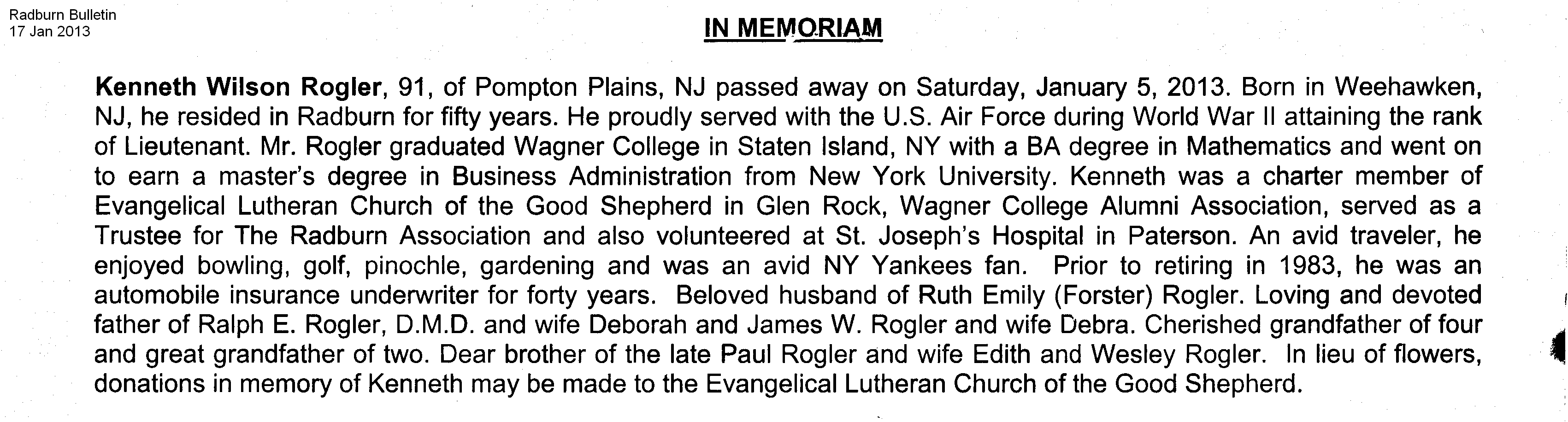 Radburn Bulletin #3209, 17 Jan 2013